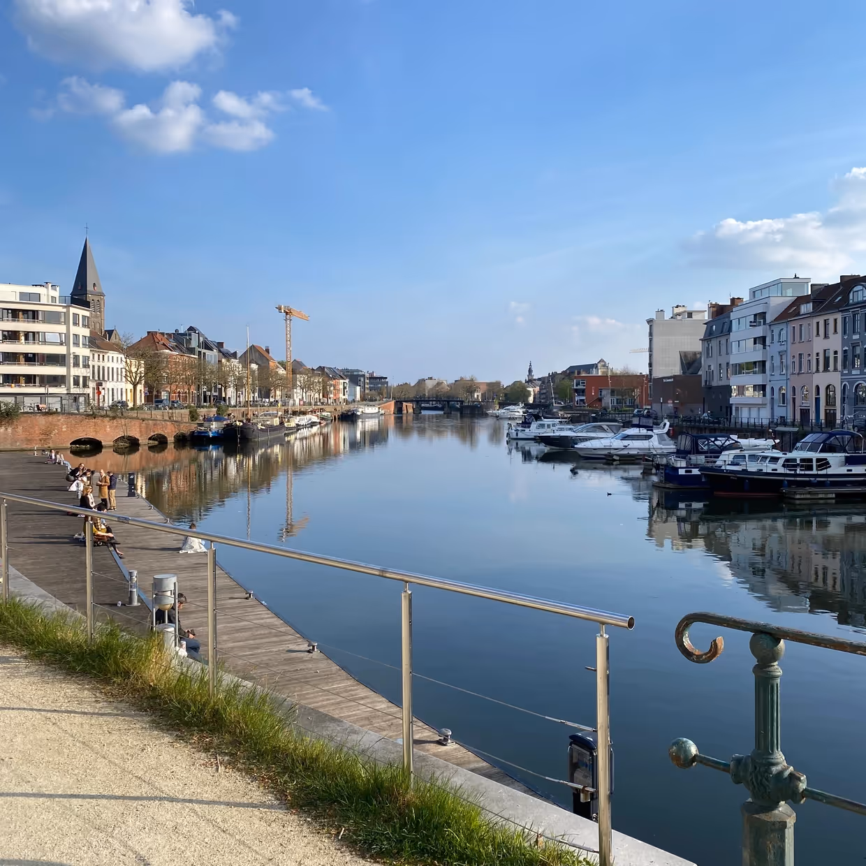 We attended church at the stunning Église Sainte-Catherine , which is typically open just to walk through as well if visiting ornate cathedrals is your thing, followed by a leisurely cycle around the city. While at church, our Airbnb hosts were gracious enough to let us keep our bikes and bags at their place, which we picked up afterwards before setting off toward Ghent.